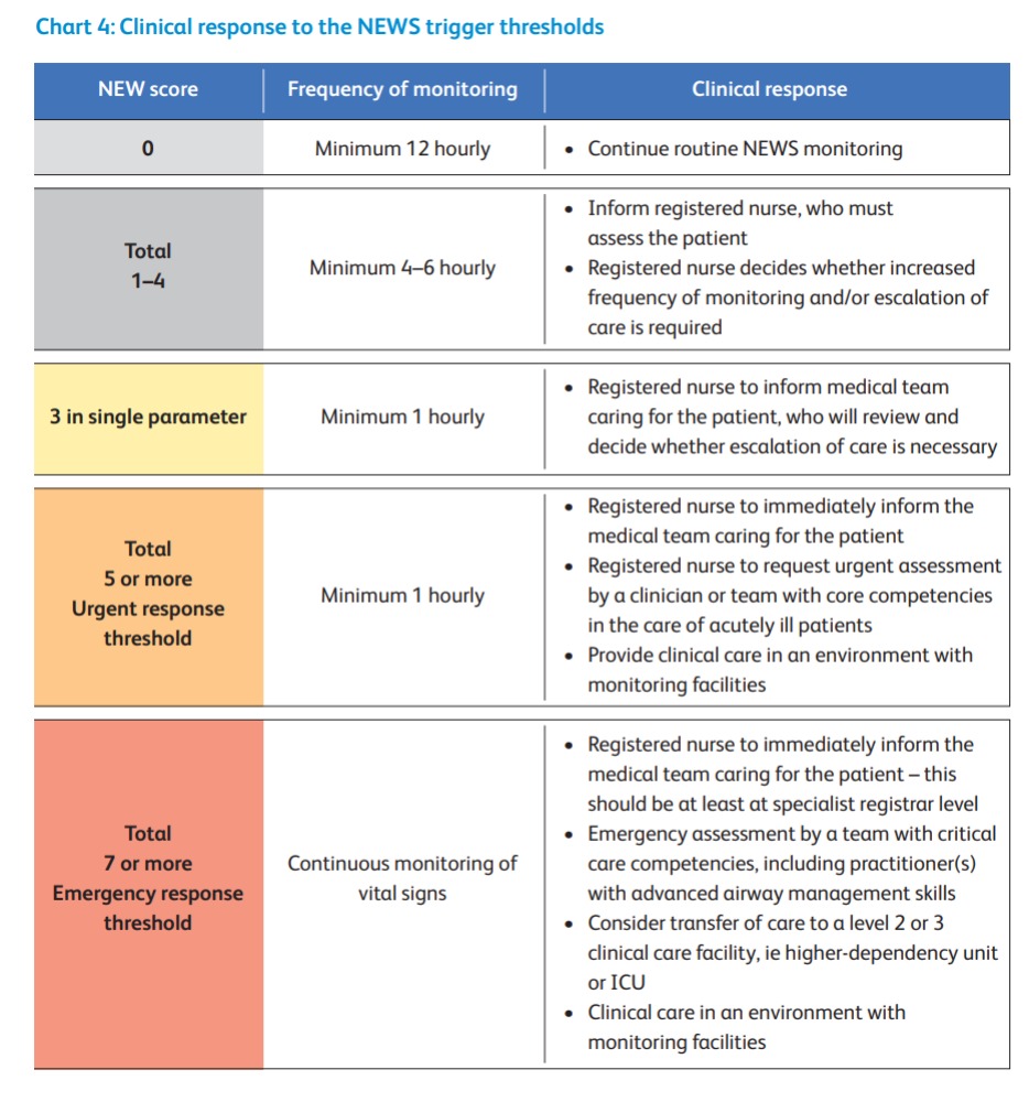 Royal College of Physicians. National Early Warning Score (NEWS) 2: Standardising the assessment of acute-illness severity in the NHS. Updated report of a working party. London: RCP, 2017
